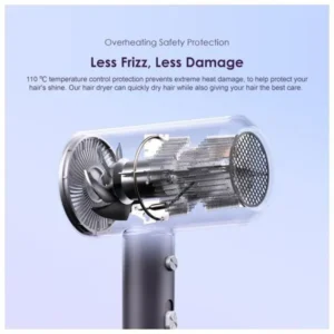 Less Frizz, Less Damage With a temperature control feature set to 110℃, this hair dryer provides overheating protection to prevent extreme heat damage. This ensures that your hair remains shiny and healthy while drying quickly.