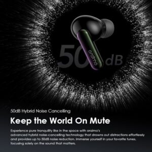 oraimo SpaceBuds, Hybrid ANC Earbuds, 50dB Noise Cancelling Earbuds, True Wireless Earphones, Type-C Bluetooth Earbuds, Gaming Earbuds Nigeria, Waterproof Earbuds, Long Battery Earbuds, Personalized Voice Prompt Earbuds, Earbuds with LED Lights, Dual Connection Earbuds.