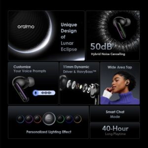 Inspired by the Lunar Eclipse, the earbuds feature a sleek, transparent, and metallic 3D texture that flows like moonlight through shadow—granting them an elegant and modern appeal. Whether you’re at home, commuting, or outdoors, oraimo SpaceBuds adapts to your lifestyle and sound preference.
