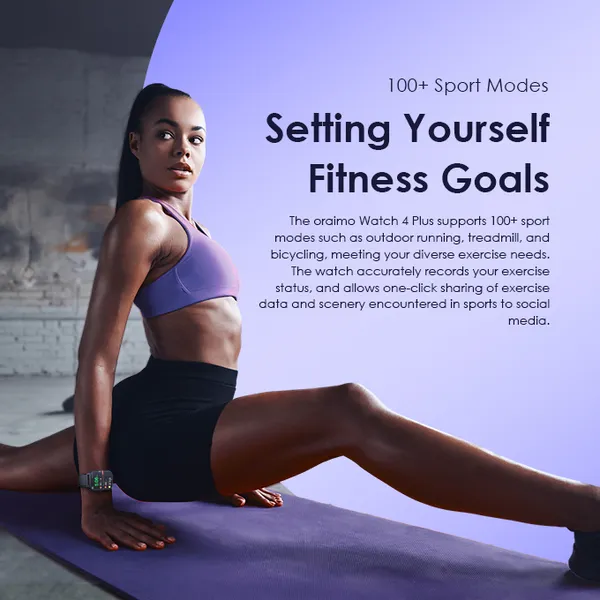 The Oraimo Watch 4 Plus supports over 100 sport modes including outdoor running, treadmill, and cycling. It accurately tracks your exercise activities, allowing you to share your progress and scenic moments directly to social media with a single click.